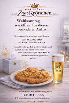 Öffnungszeiten im Herbst/Winter: Dienstag - Samstag ab 17.00 Uhr